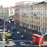 Minsks centrum kan nås inom 10 minuters promenad. Sevärdheterna invid hotellet är Fountain of Independence. Boendet ligger 250 meter från Stolitsa Underground Mall, medan Lenin Square ligger mindre än 850 meter bort. Busshållplatsen Plosca Niezalieznasci ligger en kort bit från Minsk.